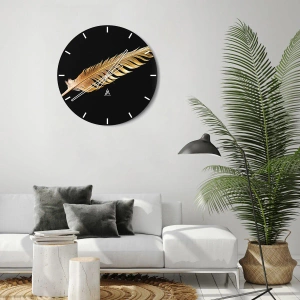 Ceas de perete - Ceas pe sticlă - Pană aurie perfectă - 30x30 cm
