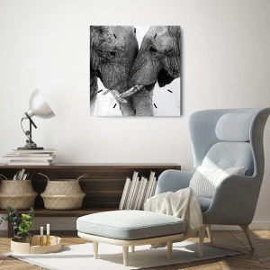 Ceas de perete - Ceas pe sticlă - Doi elefanți cu trompele împletite într-un gest tandru - 30x30cm - Mărturisire din inimă - Decorațiune modernă pentru perete pentru living, bucătărie și dormitor ARTTOR