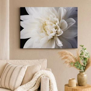 Delicatețea florii albe simbolizează puritatea și frumusețea, iar detaliile sale subtile încântă prin precizia lor. Contrastul cu fundalul întunecat conferă compoziției profunzime și expresivitate, făcând ca pictura să atragă atenția și să devină un punct focal al decorului. Datorită stilului său minimalist, se îmbină perfect cu o varietate de designuri interioare - de la modern la clasic.