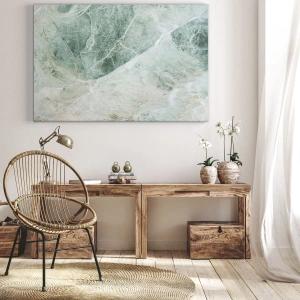 Tablou pe pânză Canvas - Marmură verde cu vene albe delicate - 70x50cm - Răcoarea nobilă a pietrei - Decorațiune modernă pentru perete pentru living și dormitor ARTTOR