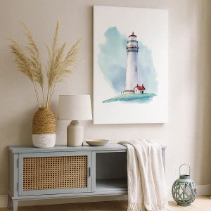 Farul simbolizează fiabilitatea și pacea, iar arhitectura sa clasică se armonizează perfect cu nuanțele delicate de acuarelă. Pictura emană pace, creând o atmosferă perfectă pentru relaxare și reflecție. Datorită utilizării culorilor subtile și a formei simple, această operă de artă se potrivește unei varietăți de stiluri de design interior, de la clasic la modern.