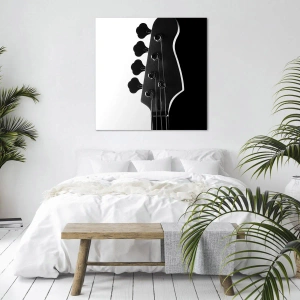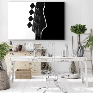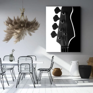 Motivul chitarei bas simbolizează pasiunea, emoțiile și energia pe care muzica le aduce în viața noastră. Contrastul dintre alb și negru conferă imaginii un caracter distinctiv și universal, făcând-o să se potrivească perfect unei varietăți de designuri interioare. Este o alegere ideală pentru cei care prețuiesc estetica minimalismului și dragostea pentru muzică.