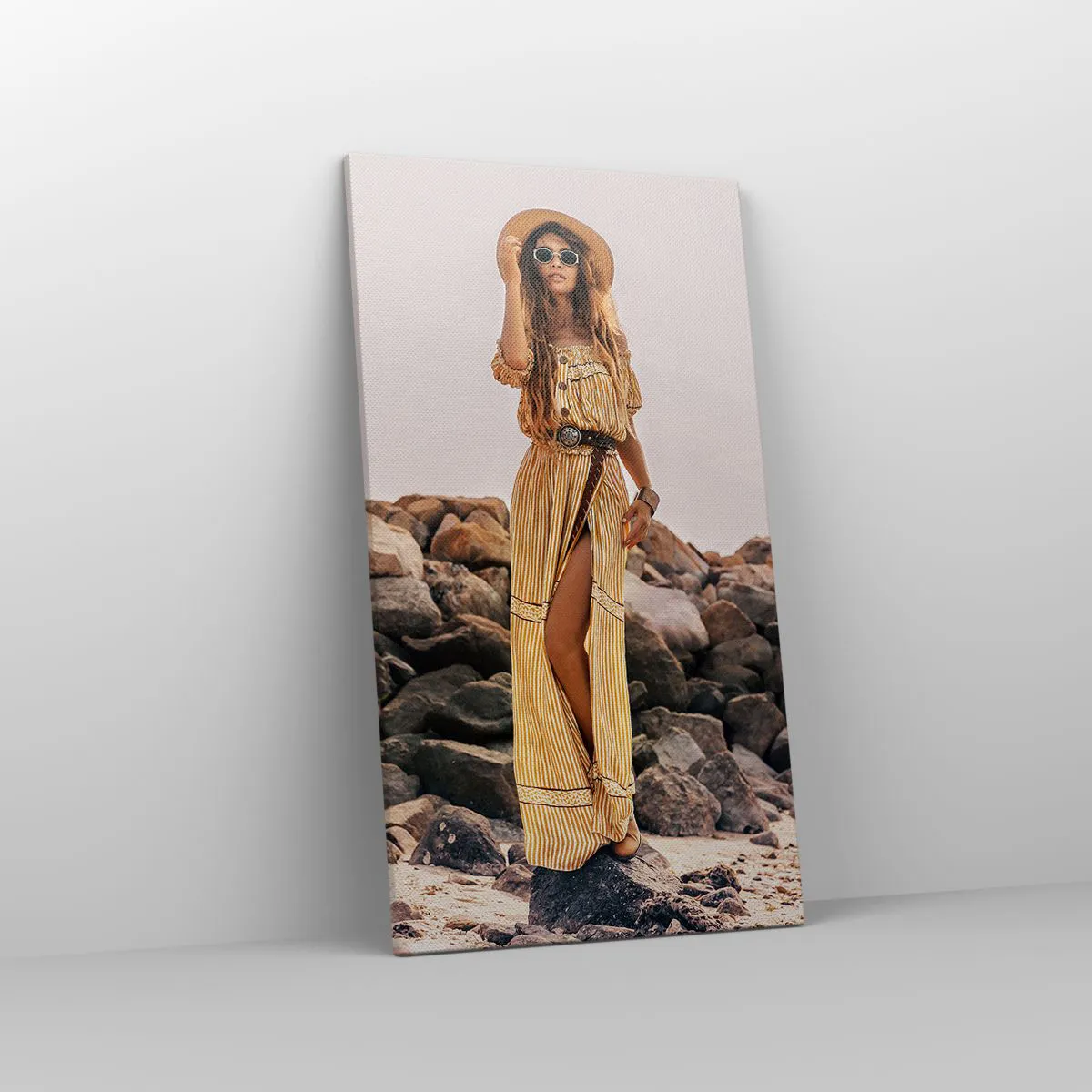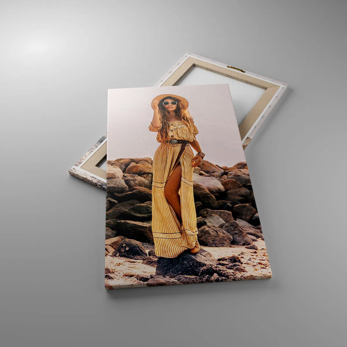 Pânza este întinsă peste cadru. Părțile laterale și marginile sunt imprimate pentru a forma o prelungire a imaginii. Tabloul este gata să fie atârnat pe perete. Fiecare produs are un o agățătoare atașată la cadru și un set de asamblare (șurub + diblu).