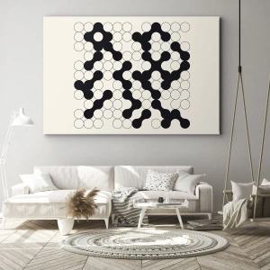 Tablou pe pânză Canvas - Modele alb-negru cu cercuri pe un fundal deschis - 70x50cm - Joc chinezesc - o variație - Decorațiune modernă pentru perete pentru living și dormitor ARTTOR