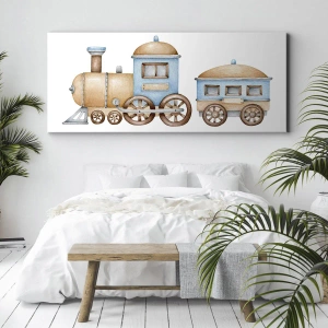 Tablou pe pânză Canvas - Desen al unui tren în nuanțe pastelate pe fundal alb - 70x50cm - Trenulețul din copilărie - Decorațiune modernă pentru perete pentru living și dormitor ARTTOR