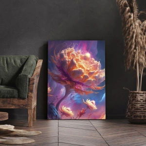 Motivul florilor *fanteziste* într-un decor suprarealist simbolizează imaginația, frumusețea și armonia naturii combinate cu infinitatea spațiului. Culorile vibrante și tranzițiile tonale subtile conferă compoziției profunzime și dinamică, subliniind în același timp stilul său unic. Este alegerea perfectă pentru cei care apreciază *arta* ce introduce elemente de imaginație și viziune în interioare.