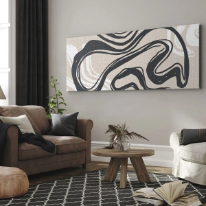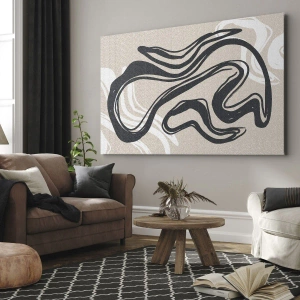 Tablou pe pânză Canvas - Linii abstracte în nuanțe închise pe un fundal bej - 70x50cm - Expresie multiplicată - Decorațiune modernă pentru perete pentru living și dormitor ARTTOR