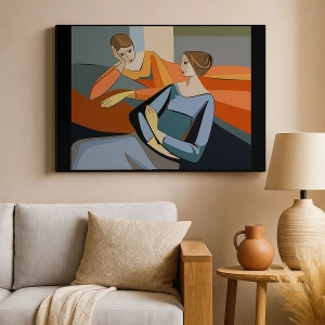 - Această ilustrație abstractă care înfățișează două femei în stil cubist, cu forme geometrice și culori vibrante, este un plus perfect pentru orice interior modern.