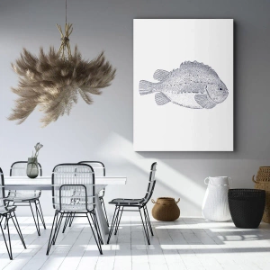 Tablou pe pânză Canvas - Desen alb-negru al unui pește pe fundal alb, în stil minimalist - 70x50cm - Pentru albumul naturalistului - Decorațiune modernă pentru perete pentru living și dormitor ARTTOR