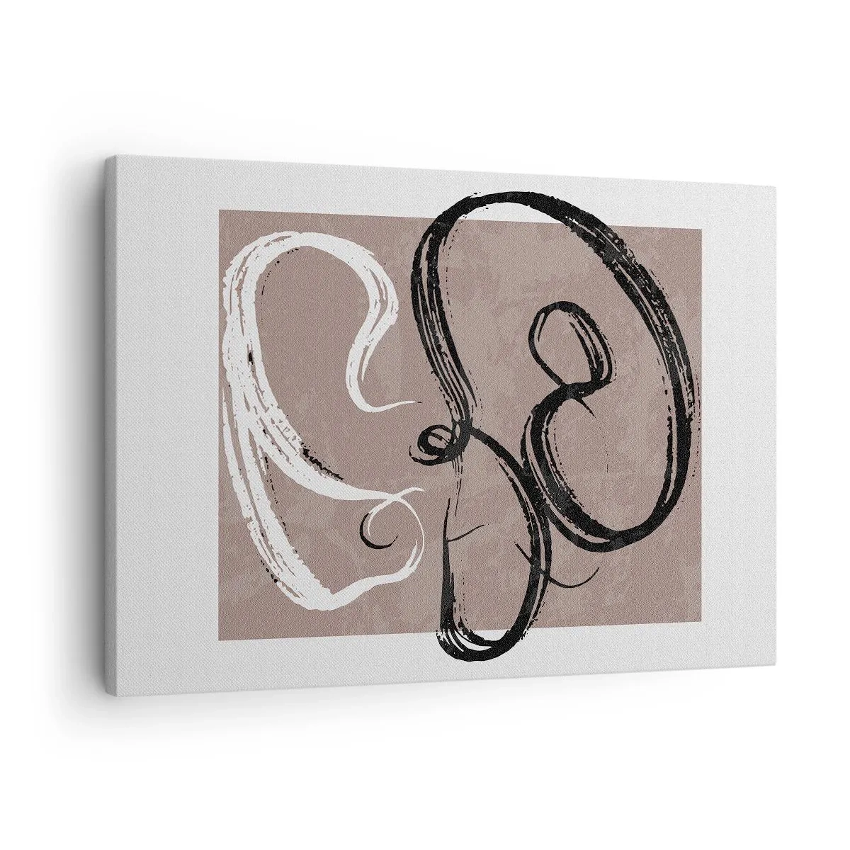 Tablou pe pânză Canvas - Abstracție alb-negru pe un fundal bej - 70x50cm - Compoziția - căutarea plenitudinii - Decorațiune modernă pentru perete pentru living și dormitor ARTTOR