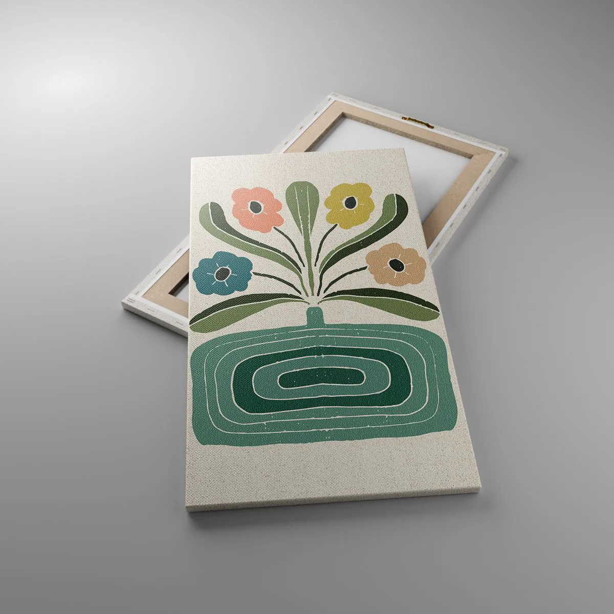 Pânza este întinsă peste cadru. Părțile laterale și marginile sunt imprimate pentru a forma o prelungire a imaginii. Tabloul este gata să fie atârnat pe perete. Fiecare produs are un o agățătoare atașată la cadru și un set de asamblare (șurub + diblu).