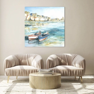 Tablou pe sticlă - Peisaj în azur - 30x30 cm