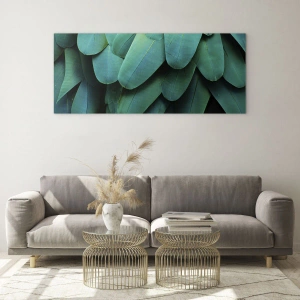 Pictura „Precizia Naturii de Papagal” este un prim-plan fascinant al structurii penelor unui papagal exotic, reprezentate în nuanțe intense de verde. Fotograful a surprins simetria și aranjamentul extraordinar al straturilor, care creează în mod natural o compoziție ritmică. Această imagine este plină de armonie și geometrie naturală, liniștind simțurile și potrivindu-se perfect esteticii interioarelor tropicale și moderne. Fiecare pană pare a fi o formă separată, iar juxtapunerea lor creează un aranjament complex care, de aproape, seamănă cu un model țesut de mâna artistului. Această fotografie surprinde frumusețea naturii într-un mod modern, dar clasic, permițând privitorului să contemple detaliile și structura.