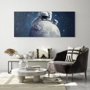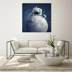 Pictura măsoară 70x50 cm și a fost imprimată pe sticlă în orientare orizontală. Datorită tehnologiei de imprimare pe sticlă, culorile sunt intense, iar detaliile – cum ar fi textura suprafeței lunii sau reflexiile de pe costumul spațial – sunt incredibil de expresive. ARTTOR garantează cea mai înaltă calitate și durabilitate a acestui produs, care arată grozav atât în interioarele caselor, cât și în spațiile educaționale.