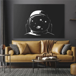- Această grafică înfățișează un astronaut cu cerul cosmic reflectat în casca sa. O ilustrație modernă, cu contrast puternic, perfectă pentru interioarele tinerești și pasionații de science fiction.