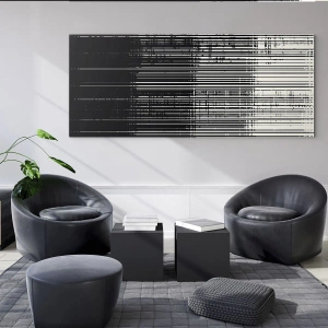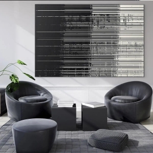 - O abstracție modernă compusă din linii orizontale dens aranjate în alb și negru, creând un efect vizual dinamic. Perfectă pentru interioare minimaliste și industriale.