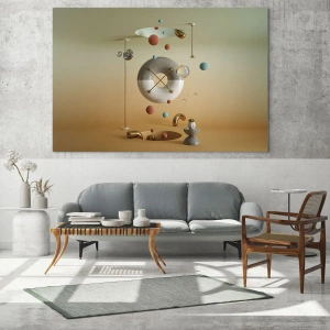 Concepută într-un stil modern și futurist, această compoziție este o decorațiune perfectă pentru un living, birou, galerie sau spațiu de coworking. Această pictură inspiră reflecție asupra formei și esteticii și oferă, de asemenea, un accent vizual unic care nu trece neobservat.