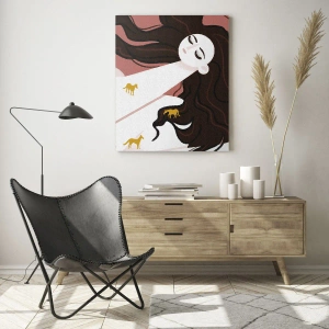 Elementul distinctiv al acestei compoziții sunt caii mici, aurii, plasați în diverse locuri pe corpul și părul femeii. Motivul cailor aurii introduce un element de basm și simbolism, sugerând vise, libertate și puterea ascunsă în delicatețe. Stilul minimalist al picturii, formele simplificate și culorile pastelate creează un întreg coerent, ideal pentru interioarele care caută consolare și expresie artistică.