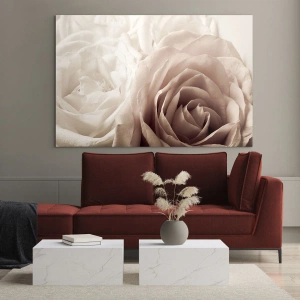 Tablou pe sticlă - Trandafiri delicați și ușori într-un prim-plan romantic - 70x50cm - În inima unui trandafir - Decorațiune modernă pentru perete pentru living și dormitor ARTTOR