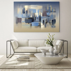 Tablou pe sticlă - Construcție albastră - 120x50 cm
