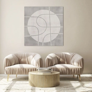 Culorile în nuanțe de bej și gri dau o senzație de calm și neutralitate, făcând ca pictura să se potrivească perfect pentru aproape orice interior. Minimalismul formei și lipsa elementelor decorative suplimentare fac ca privirea să se concentreze asupra compoziției și proporțiilor acesteia. Pictura atrage atenția prin simplitatea sa elegantă și mesajul estetic clar.