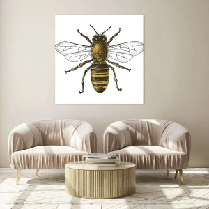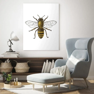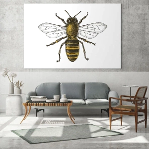 Tablou pe sticlă - Ilustrație detaliată a unei albine pe fundal alb - 70x50cm - Frumoasă și bună - Decorațiune modernă pentru perete pentru living și dormitor ARTTOR