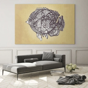 Tablou de perete - Din Oceanul Ornamentelor - Pește de desene animate cu ornamente pe fundal bej