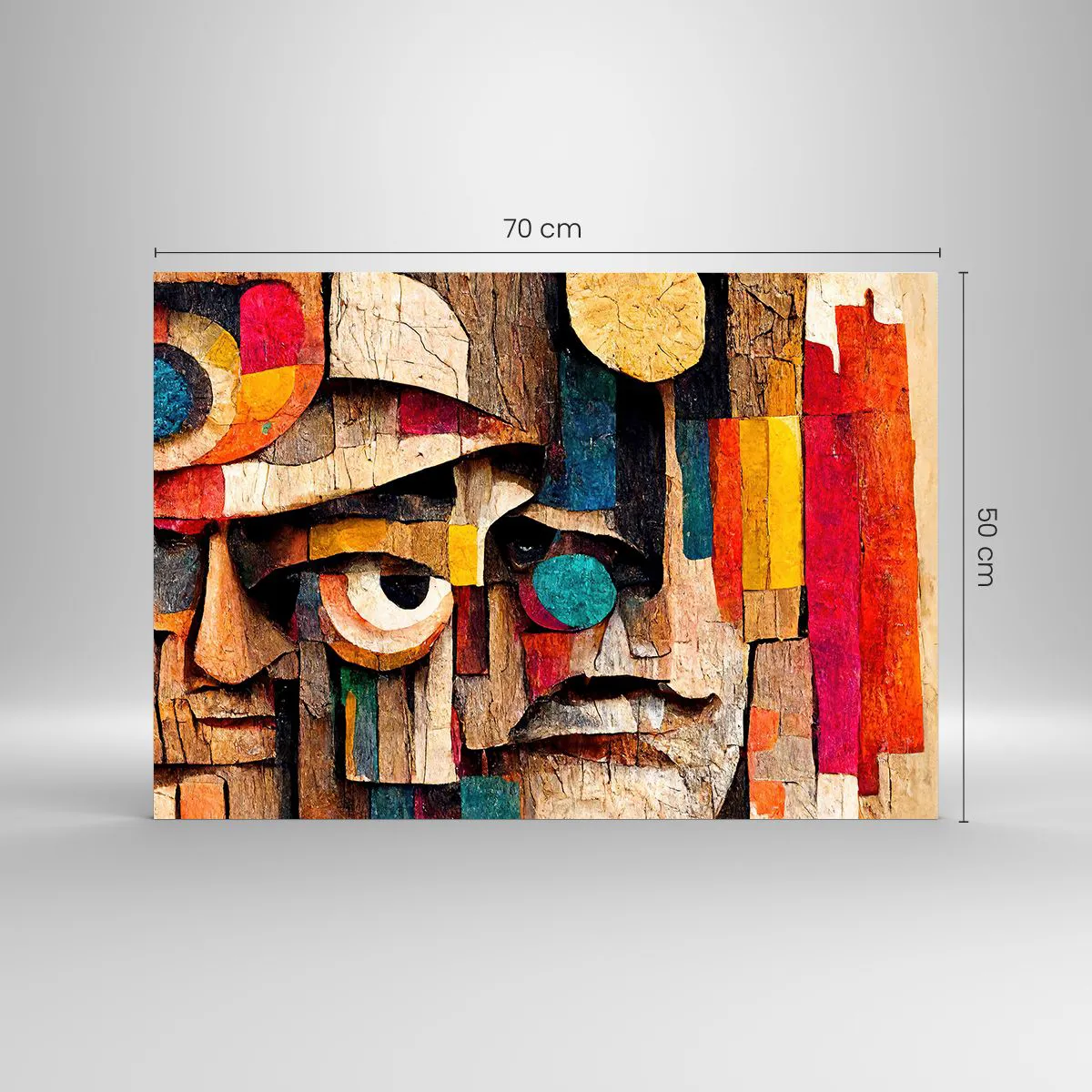 Tablou pe sticlă - Fețe geometrice colorate într-un stil abstract - 70x50cm - Te văd... - Decorațiune modernă pentru perete pentru living și dormitor ARTTOR