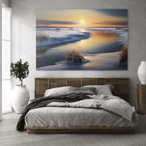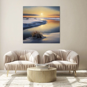 Tablou pe sticlă - Apus de soare pe timp de iarnă - 30x30 cm