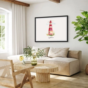 Poster în ramă neagră - Ilustrație în acuarelă a unui far pe un fundal deschis - 50x70cm - Întotdeauna vreme bună - Decorațiune modernă pentru perete pentru living și dormitor ARTTOR