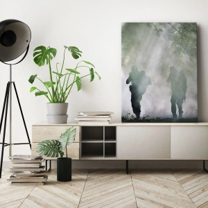 Tablou pe pânză Canvas - Siluete de soldați într-o pădure înconjurată de ceață - 70x50cm - Unul pentru toți... - Decorațiune modernă pentru perete pentru living și dormitor ARTTOR