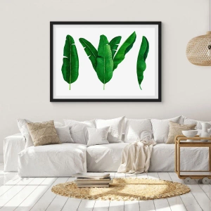 Poster în ramă neagră - Ilustrație în acuarelă a frunzelor de bananier aranjate simetric pe fundal alb. - 50x70cm - Simetrie verde - Decorațiune modernă pentru perete pentru living și dormitor ARTTOR