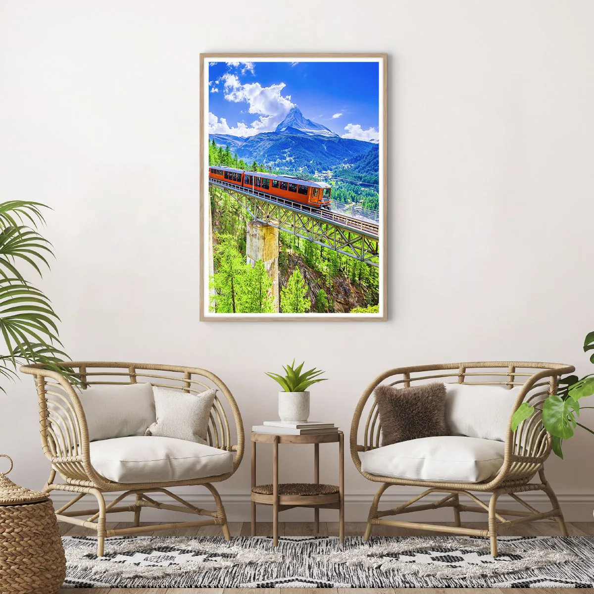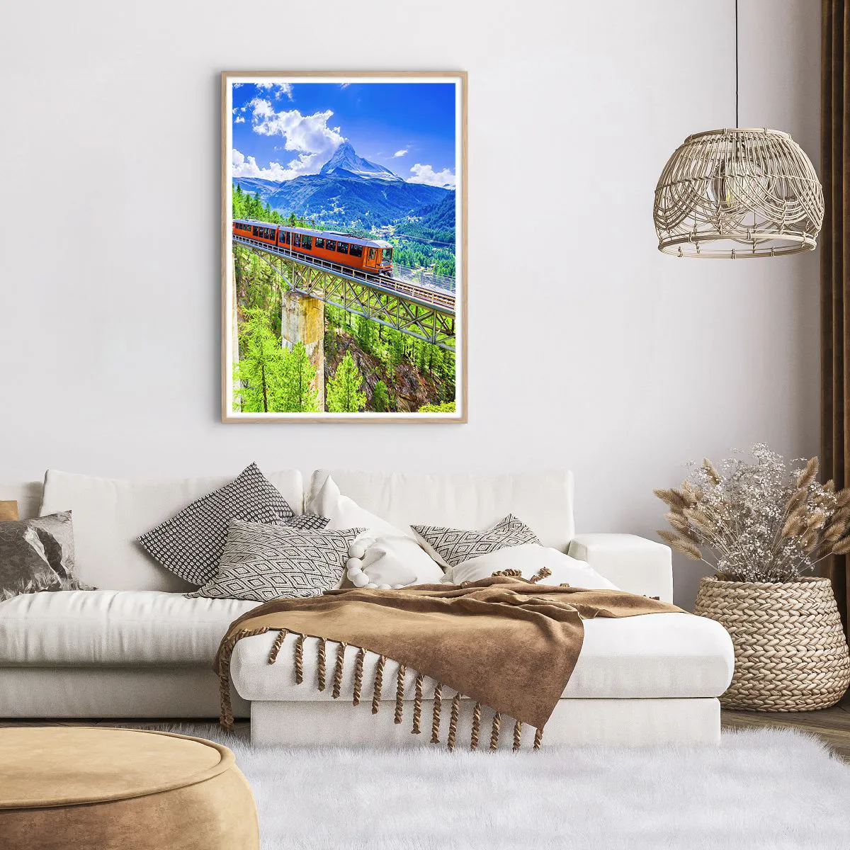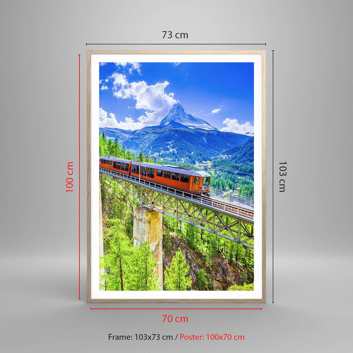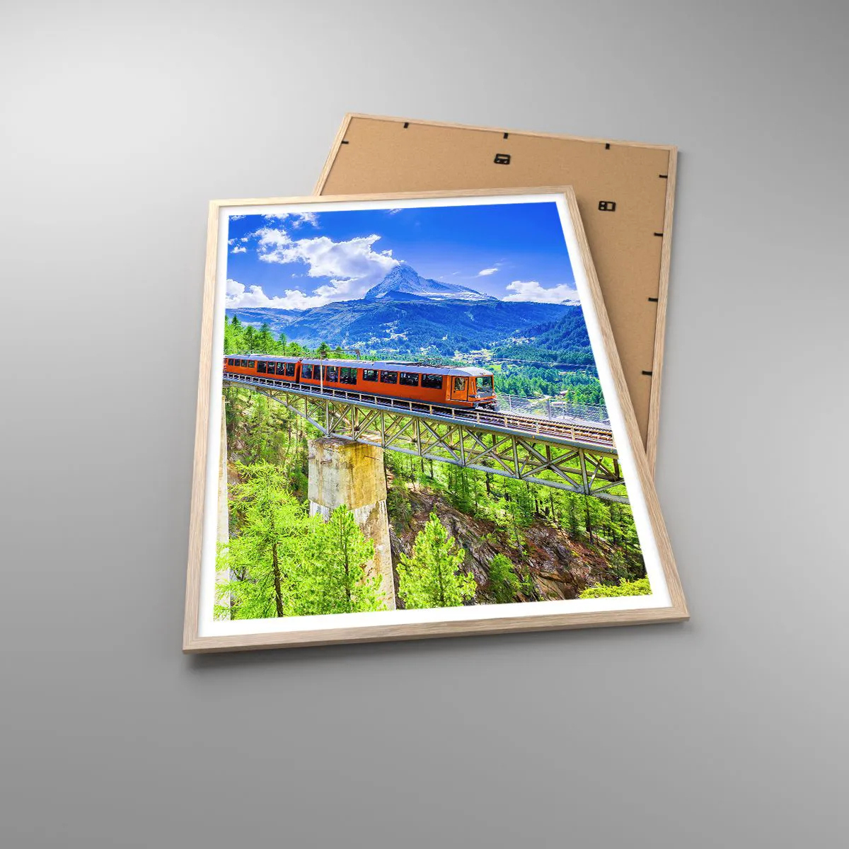 Poster în ramă de stejar deschis - Calea ferată din Alpi - 70x100 cm