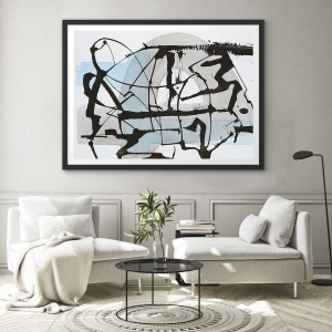 - Posterul prezintă o abstracție dinamică în nuanțe de albastru, negru și gri. Liniile plasate expresiv și stropii de culoare creează o compoziție unică, perfectă pentru interioarele moderne.