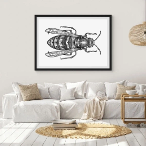 Motivul *viespei*, surprins într-un mod detaliat, face trimitere la o ilustrație științifică clasică, fiind alegerea perfectă pentru pasionații de *entomologie*. Designul alb-negru permite o adaptare versatilă la o varietate de stiluri de design interior, de la spații industriale la spații scandinave și clasice.
