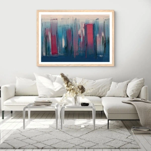 Poster în ramă de stejar deschis - Compoziție verticală în albastru și roșu - 70x50 cm