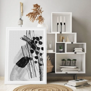 Poster în ramă albă - Abstracție organică în negru și alb - 50x70 cm