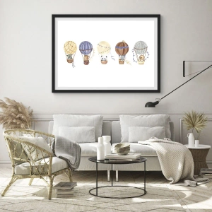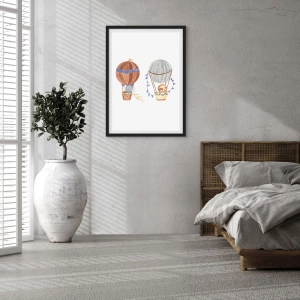 - Acest poster în stil acuarelă prezintă animale adorabile care zboară în baloane. Culorile delicate și compoziția de basm sunt perfecte pentru camera unui copil.