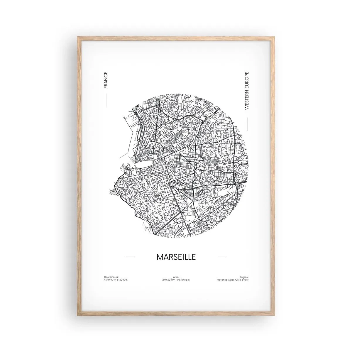 Poster în ramă de stejar deschis - Anatomia Marsiliei - 70x100 cm