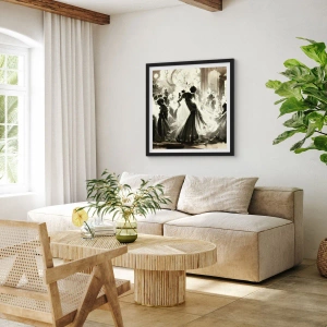 Culorile monocromatice ale posterului creează o atmosferă de lux și nostalgie, amintind de vremurile de demult ale adunărilor aristocratice. Tranzițiile subtile de lumină și umbră sporesc impresia de dinamism și eleganță, făcând ca imaginea să se potrivească perfect atât interioarelor clasice, cât și celor moderne.