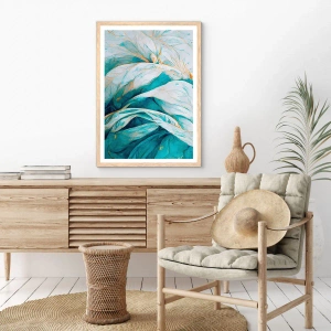 Poster în ramă de stejar deschis - Abstractul albastru cu motiv auriu - 70x50 cm