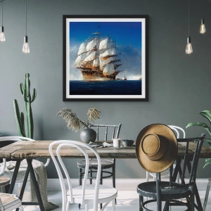 Imprimeul de înaltă calitate reproduce fidel textura valurilor și detaliile greementului, oferind imaginii profunzime și realism. Formatul de 50x70 cm prezintă perfect compoziția, iar rama neagră inclusă îi conferă un finisaj elegant și face posterul gata de agățat pe perete.