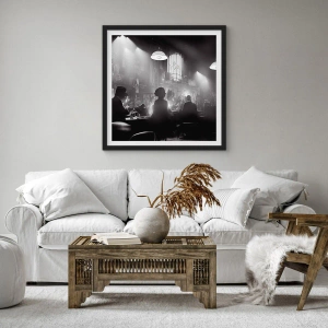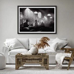 Poster în ramă neagră - O scenă alb-negru dintr-un club de noapte cu jazz atmosferic - 50x70cm - În stil jazz - Decorațiune modernă pentru perete pentru living și dormitor ARTTOR