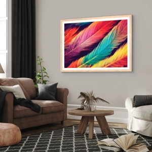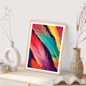 Poster în ramă de stejar deschis - Curcubeu cu pene - 30x30 cm