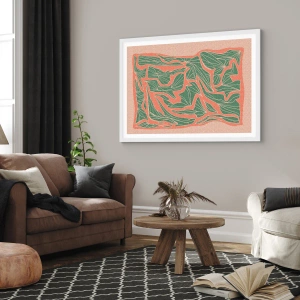 Poster în ramă albă - Lupta dintre coral și verde - 50x70 cm