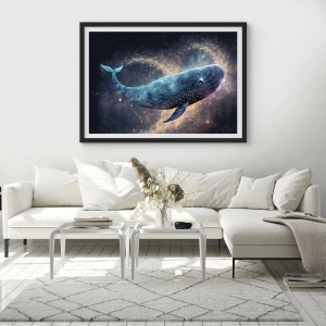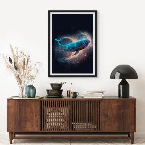 Poster în ramă neagră - O balenă spațială înconjurată de o nebuloasă stelară pe un fundal negru. - 50x70cm - Există o lume... - Decorațiune modernă pentru perete pentru living și dormitor ARTTOR