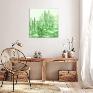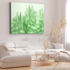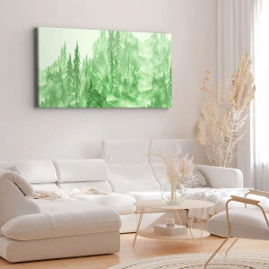 - imprimare pe pânză care înfățișează o pădure verde subtilă în stil acuarelă pe un fundal deschis la culoare. O decorațiune perfectă pentru a aduce armonie și liniște oricărui interior.