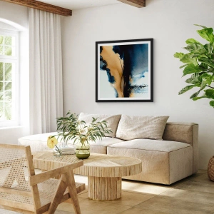 Poster în ramă neagră - O compoziție abstractă în nuanțe de albastru marin și auriu - 50x70cm - În spatele cortinei - Decorațiune modernă pentru perete pentru living și dormitor ARTTOR