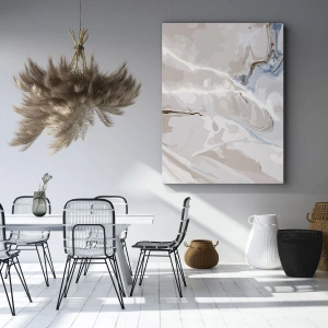 - Această imprimare pe pânză prezintă un model abstract în nuanțe de alb, albastru și tonuri pământii. Este perfectă pentru interioarele moderne, aducând armonie subtilă și eleganță.