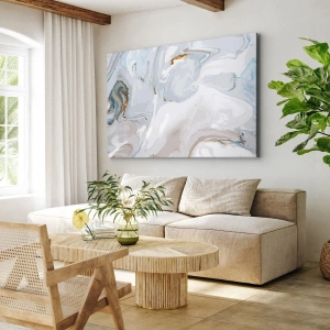 - Pictura înfățișează valuri abstracte în nuanțe subtile de alb și albastru. Formele sale organice și structurile dinamice creează un accent decorativ elegant, potrivit atât pentru camerele de zi, dormitoare, cât și pentru birouri.